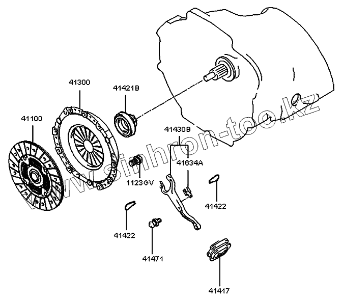 Каталог запасных частей к технике: Hyundai H100 Porter. Вилка выключения сцепления (KM135M)