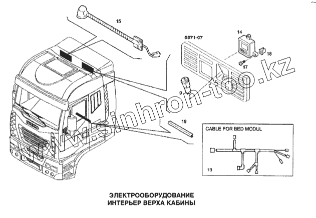 Каталог запасных частей к технике: IVECO Stralis. Электрооборудование, интерьер верха кабины