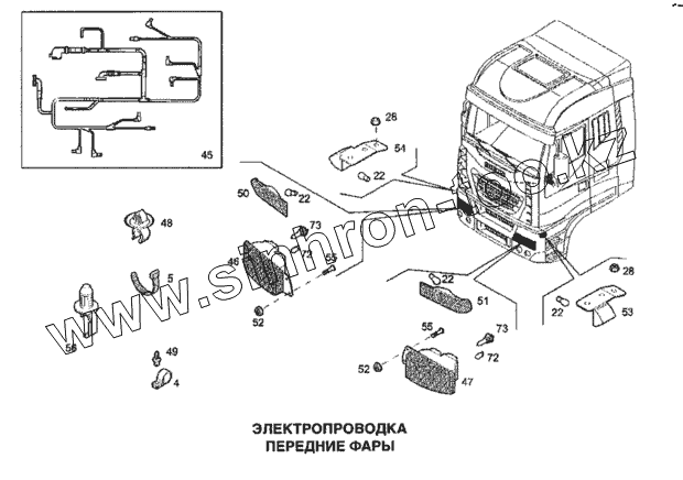 Каталог запасных частей к технике: IVECO Stralis. Электропроводка, передние фары