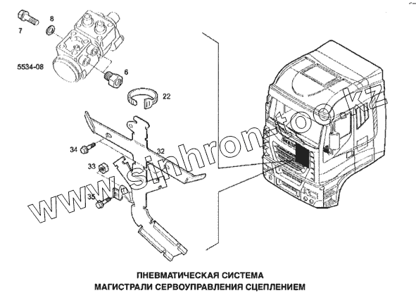 Каталог запасных частей к технике: IVECO Stralis. Пневматическая система, магистрали сервоуправления сцеплением