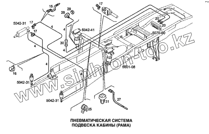 Каталог запасных частей к технике: IVECO Stralis. Пневматическая система, подвеска кабины (рама)