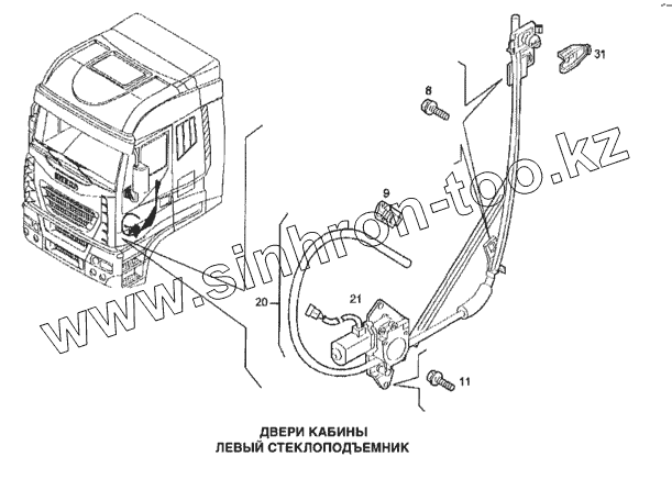 Каталог запасных частей к технике: IVECO Stralis. Стеклоподъемник левой двери