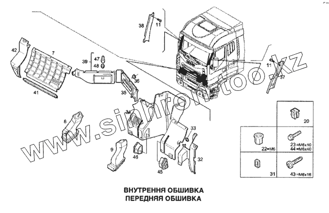 Каталог запасных частей к технике: IVECO Stralis. Внутренняя обшивка, передняя