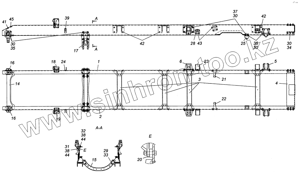 Каталог запасных частей к технике: Камский автозавод 4308. Рама в сборе Э4308-2800010