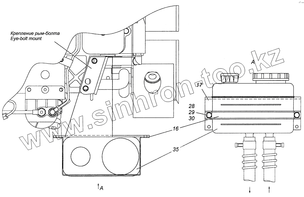 Каталог запасных частей к технике: Камский автозавод 4308. Установка бачка 4308-3400019