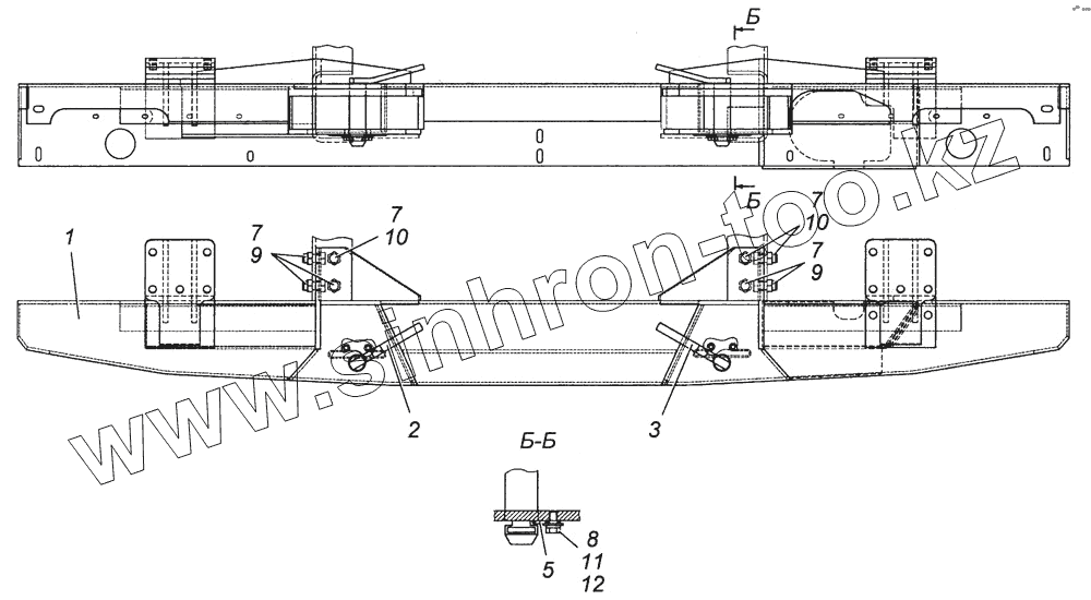 Каталог запасных частей к технике: Камский автозавод 4308. Установка буксирной поперечины Э4308-2801003