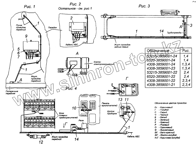 Каталог запасных частей к технике: Камский автозавод 4308. Установка электрооборудования АБС Э4308-3859001-24