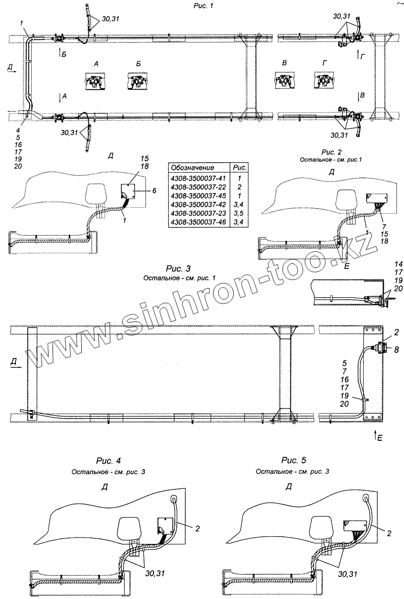 Каталог запасных частей к технике: Камский автозавод 4308. Установка кабелей АБС 4308-3500037-41
