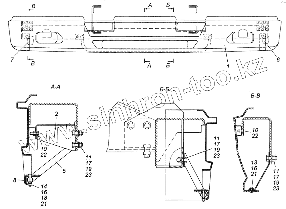 Каталог запасных частей к технике: Камский автозавод 4308. Установка облицовки буфера Э4308-2803004