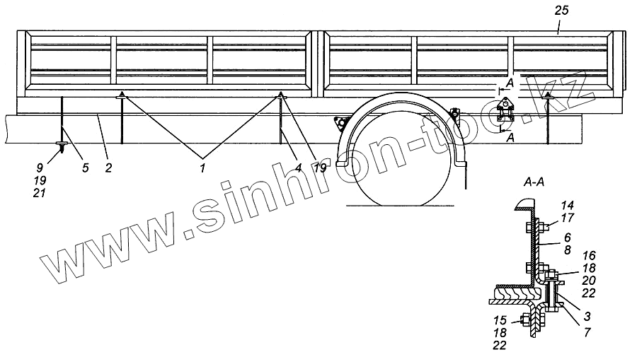 Каталог запасных частей к технике: Камский автозавод 4308. Установка платформы 4308-8500008-20