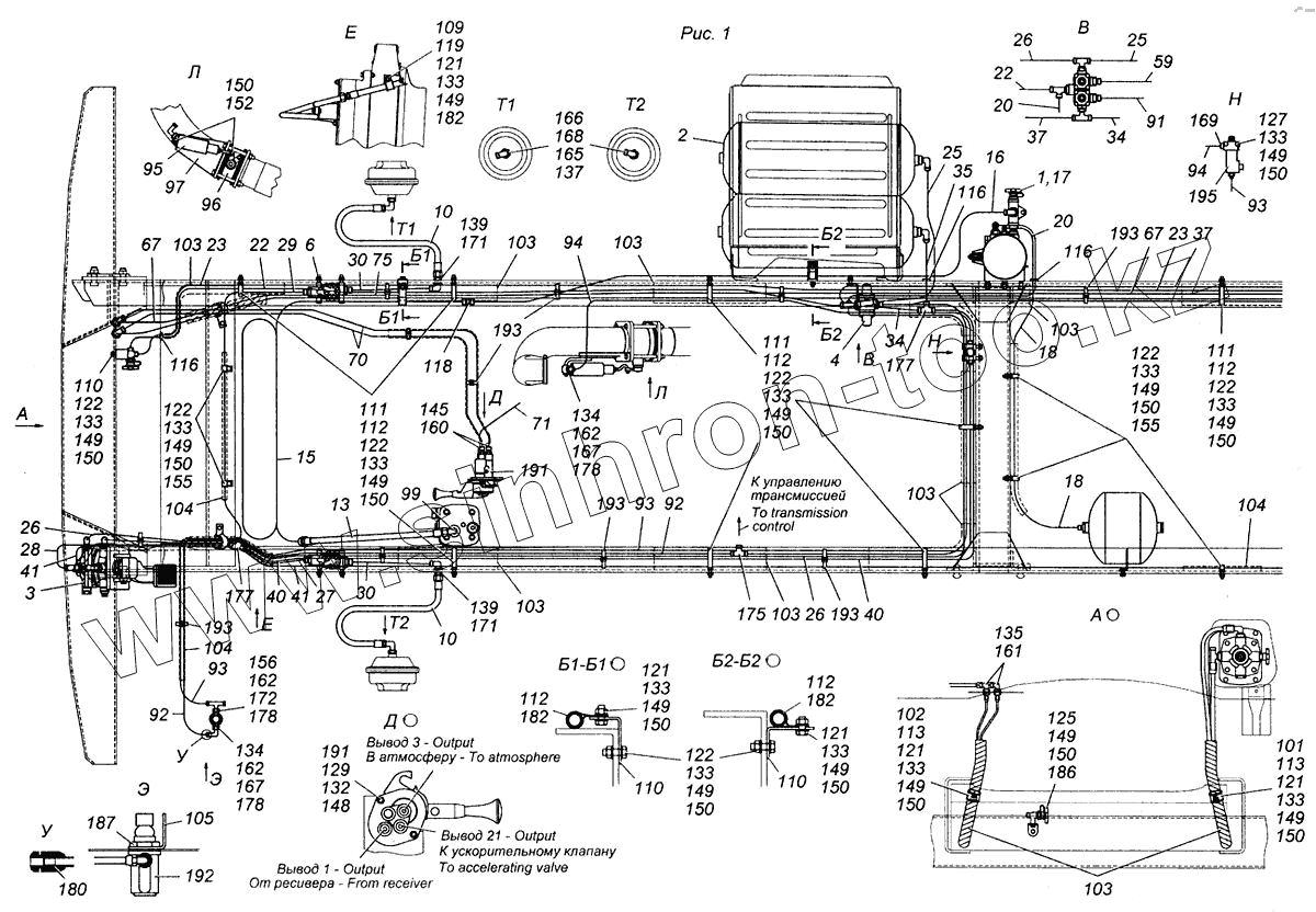 Каталог запасных частей к технике: Камский автозавод 4308. Установка пневмотормозов 4308-3500006