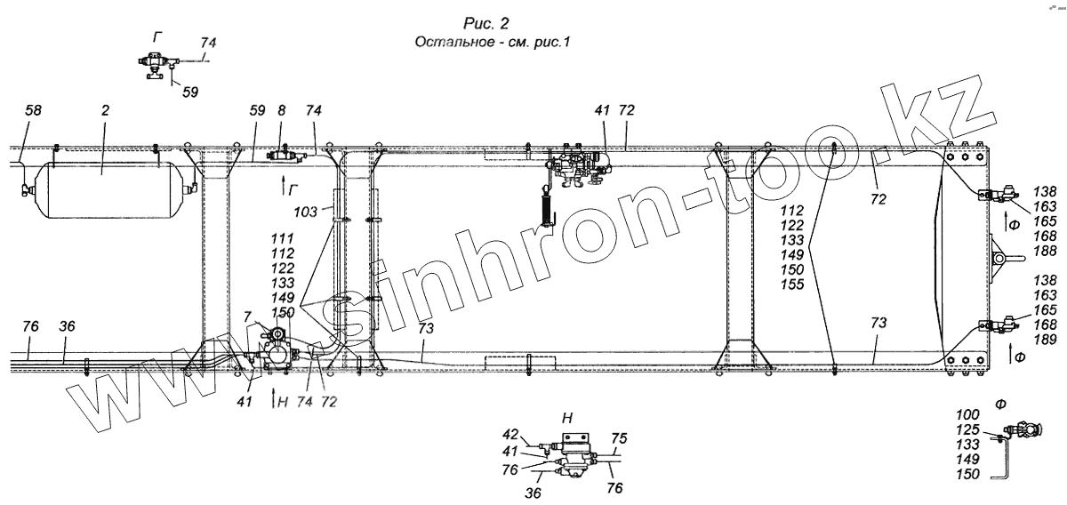 Каталог запасных частей к технике: Камский автозавод 4308. Установка пневмотормозов 4308-3500006