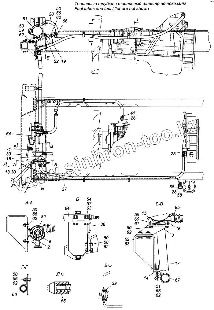 Каталог запасных частей к технике: Камский автозавод 4308. Установка подогревателя ПЖД 12Б Э4308-8106001
