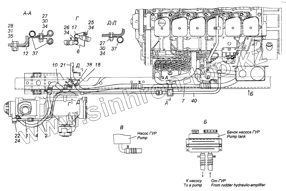 Каталог запасных частей к технике: Камский автозавод 4308. Установка трубопроводов 4308-3400018-10