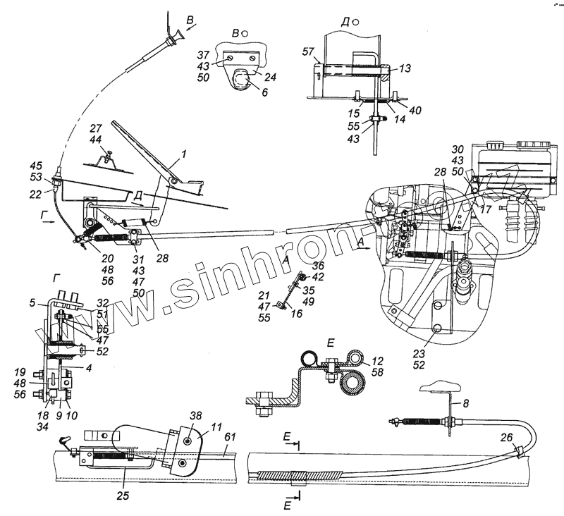 Каталог запасных частей к технике: Камский автозавод 4308. Установка управления подачей топлива Э4308-1108003