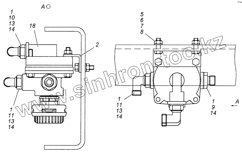 Каталог запасных частей к технике: Камский автозавод 4308. Установка ускорительного клапана 4308-3500018