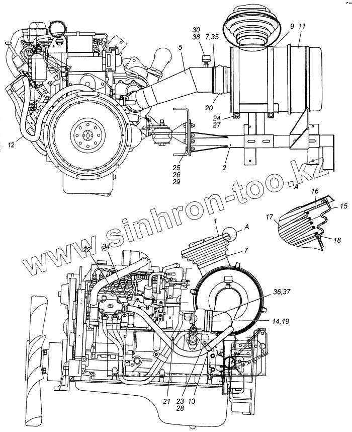 Каталог запасных частей к технике: Камский автозавод 4308. Установка воздушного фильтра Э4308-1109001