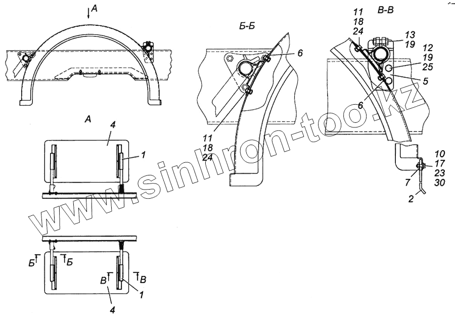Каталог запасных частей к технике: Камский автозавод 4308. Установка задних крыльев Э4308-8404003