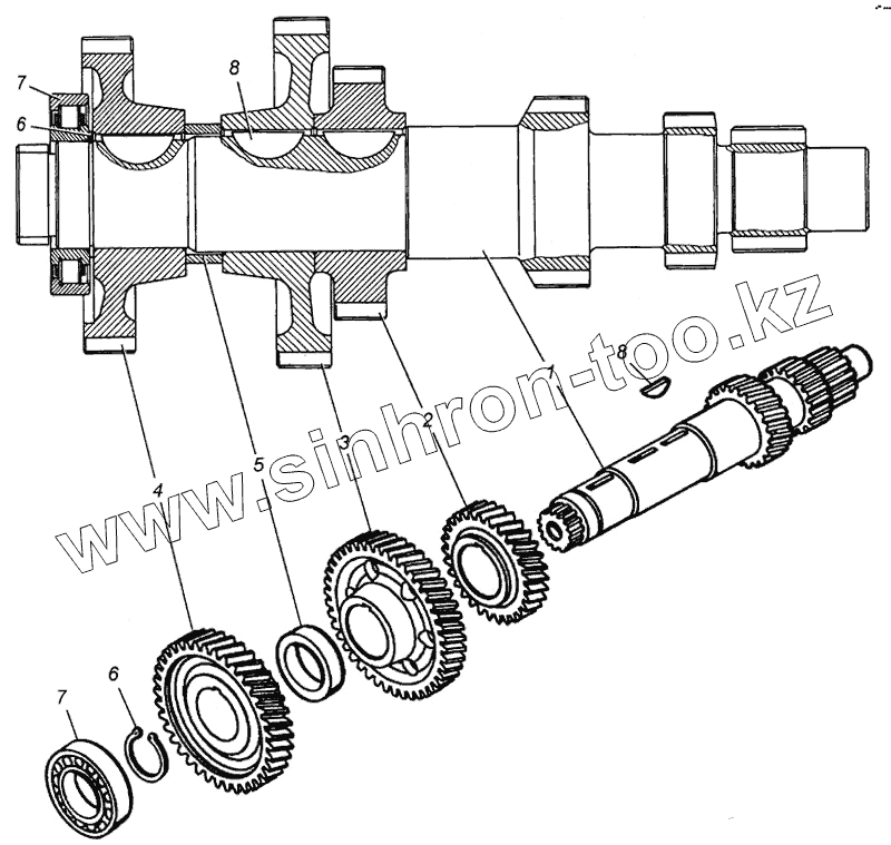 Каталог запасных частей к технике: Камский автозавод 4308. Вал промежуточный в сборе 141.1701047