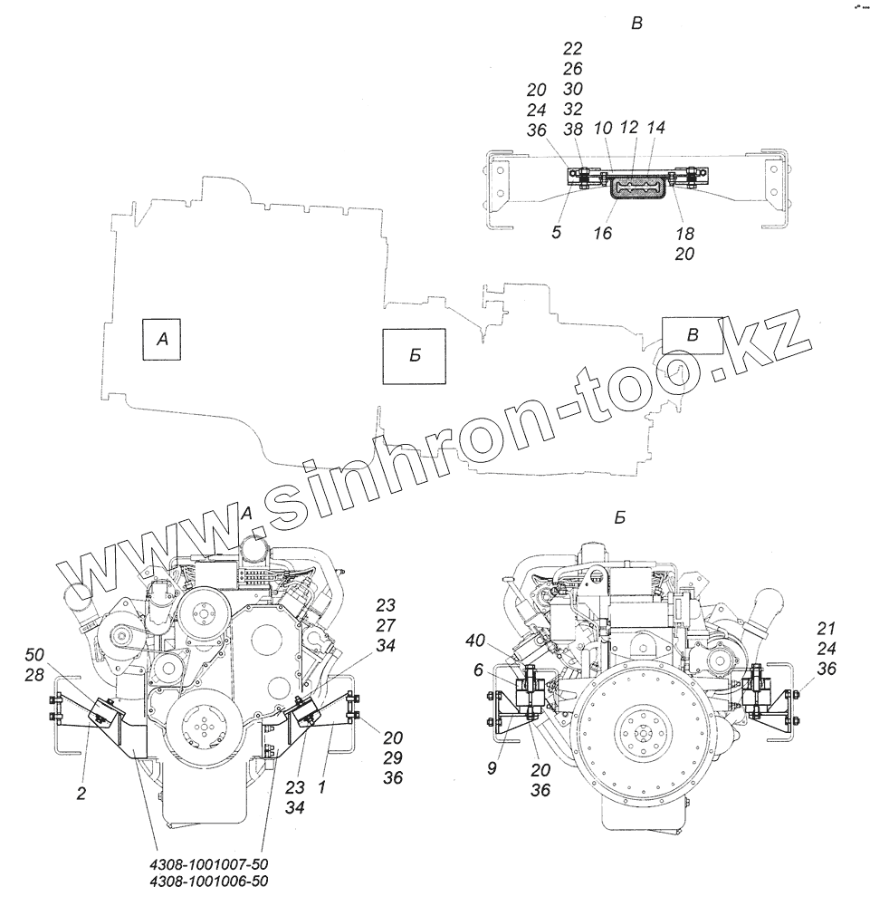 Каталог запасных частей к технике: Камский автозавод 4308. 4308-1001005-50 Установка силового агрегата