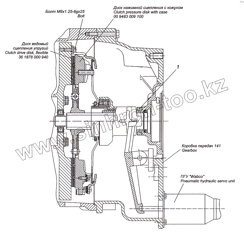 Каталог запасных частей к технике: Камский автозавод 4308. 4308-1600010 Сцепление