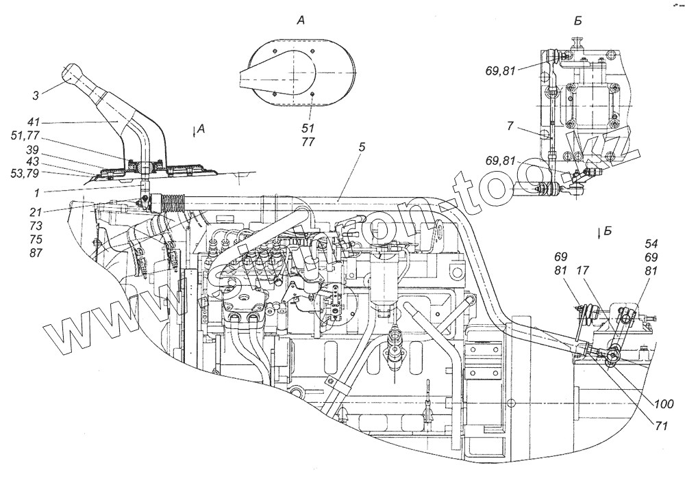 Каталог запасных частей к технике: Камский автозавод 4308. 4308-1703005 Привод управления механизмом переключения передач