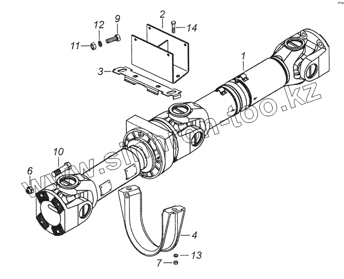 Каталог запасных частей к технике: Камский автозавод 4308. 4308-2200001-80 Установка карданных валов