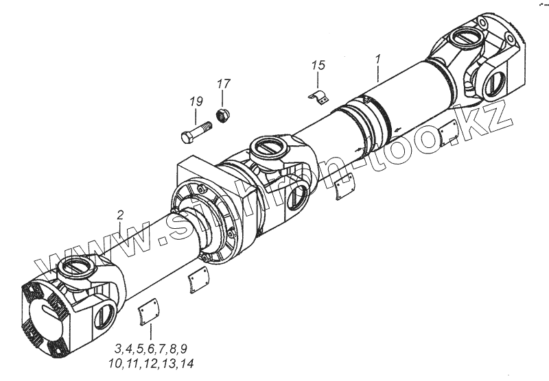Каталог запасных частей к технике: Камский автозавод 4308. 4308-2201006-73 Вал карданный трехшарнирный