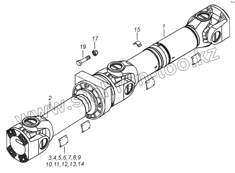 Каталог запасных частей к технике: Камский автозавод 4308. 4308-2201006-74 Вал карданный трехшарнирный