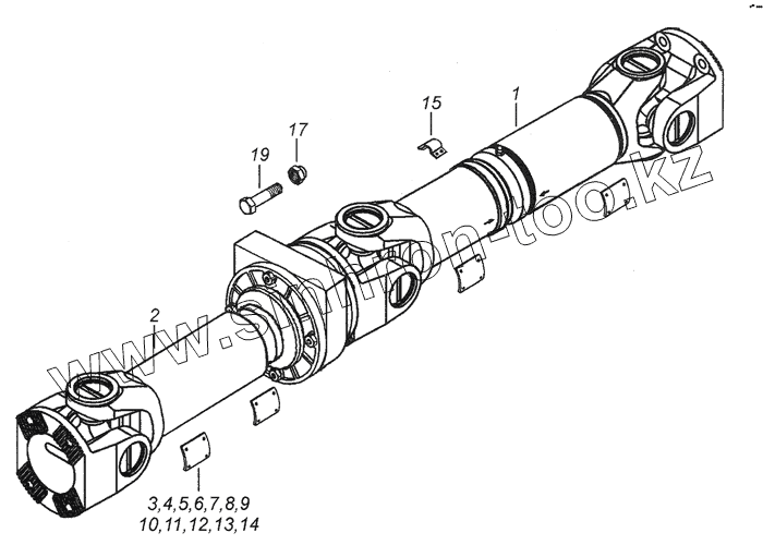 Каталог запасных частей к технике: Камский автозавод 4308. 4308-2201006-80 Вал карданный трехшарнирный