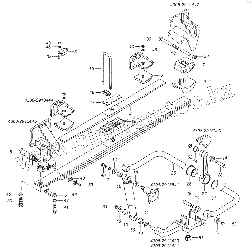 Каталог запасных частей к технике: Камский автозавод 4308. 4308-2900002 Установка задней подвески