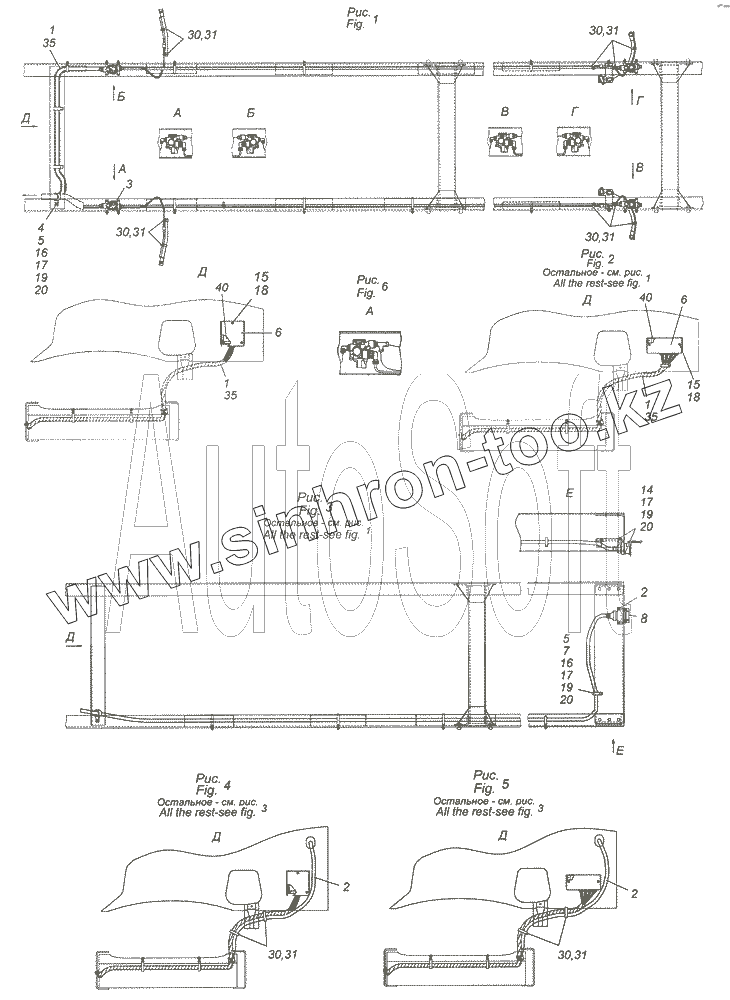 Каталог запасных частей к технике: Камский автозавод 4308. 4308-3500037-51 Установка кабелей АБС