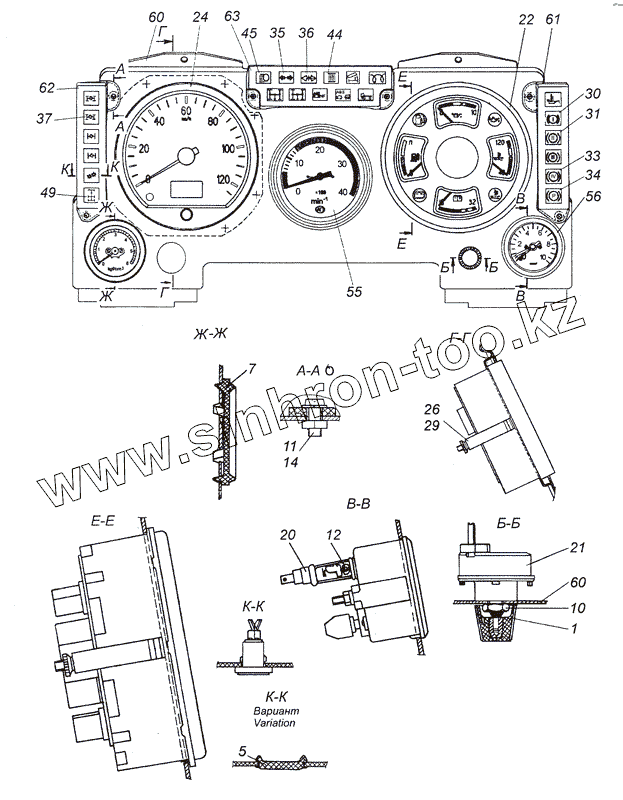 Каталог запасных частей к технике: Камский автозавод 4308. 4308-3805010-30 Щиток приборов