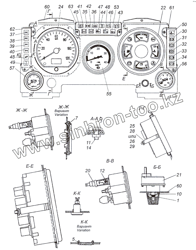 Каталог запасных частей к технике: Камский автозавод 4308. 4308-3805010-39 Щиток приборов
