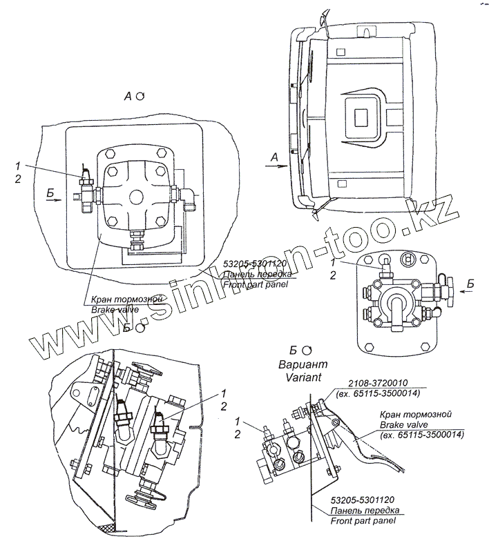 Каталог запасных частей к технике: Камский автозавод 4308. 4308-3830002 Установка датчиков аварийного давления воздуха