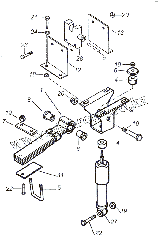 Каталог запасных частей к технике: Камский автозавод 4308. 4308-5001006-01 Установка задней подвески кабины
