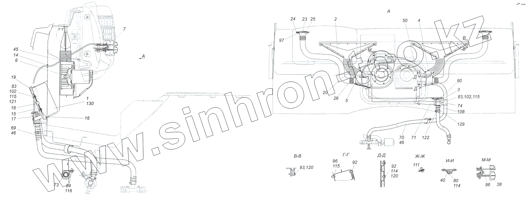 Каталог запасных частей к технике: Камский автозавод 4308. 4308-8100005 Установка системы отопления кабины