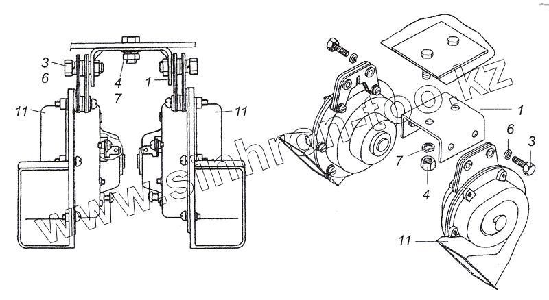 Каталог запасных частей к технике: Камский автозавод 4308. 5320-3721001-10 Установка звуковых электрических сигналов