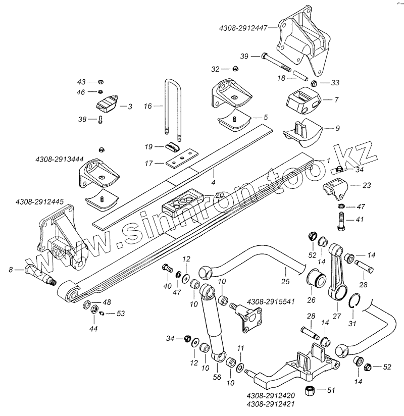 Каталог запасных частей к технике: Камский автозавод 4308 (Евро 3). 4308-2900002 Установка задней подвески