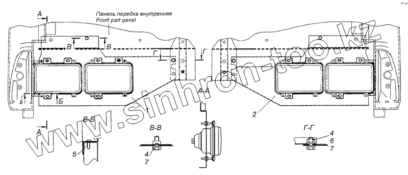 Каталог запасных частей к технике: Камский автозавод 4308 (Евро 3). 4308-3711001 Установка фар