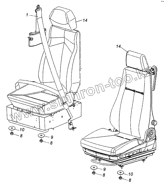 Каталог запасных частей к технике: Камский автозавод 4308 (Евро 4). 5460-5000122 Установка сиденья пассажира