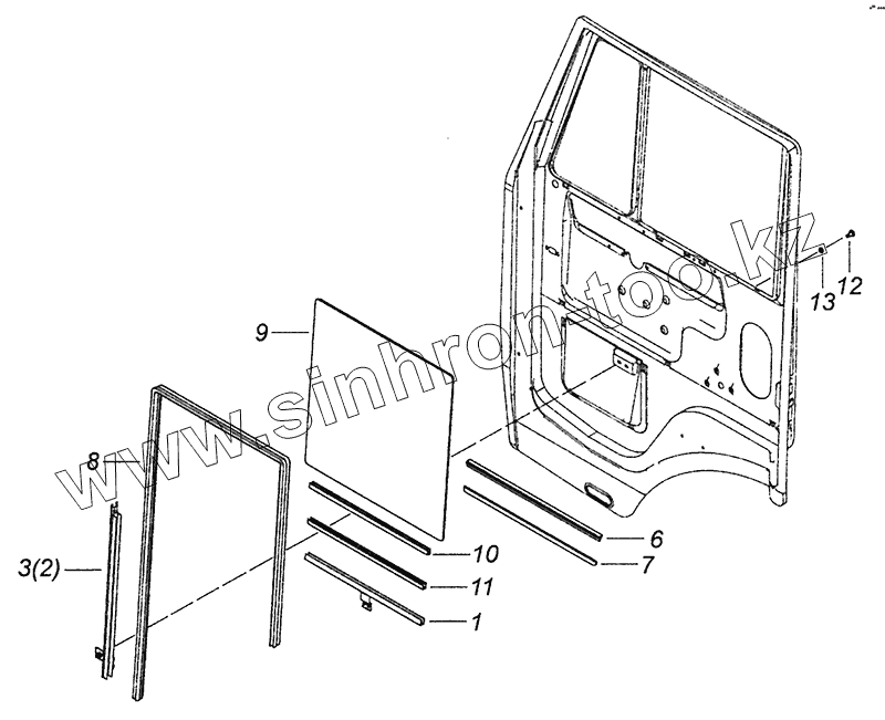 Каталог запасных частей к технике: Камский автозавод 4308 (Евро 4). 65115-6110005 Установка опускных стекол