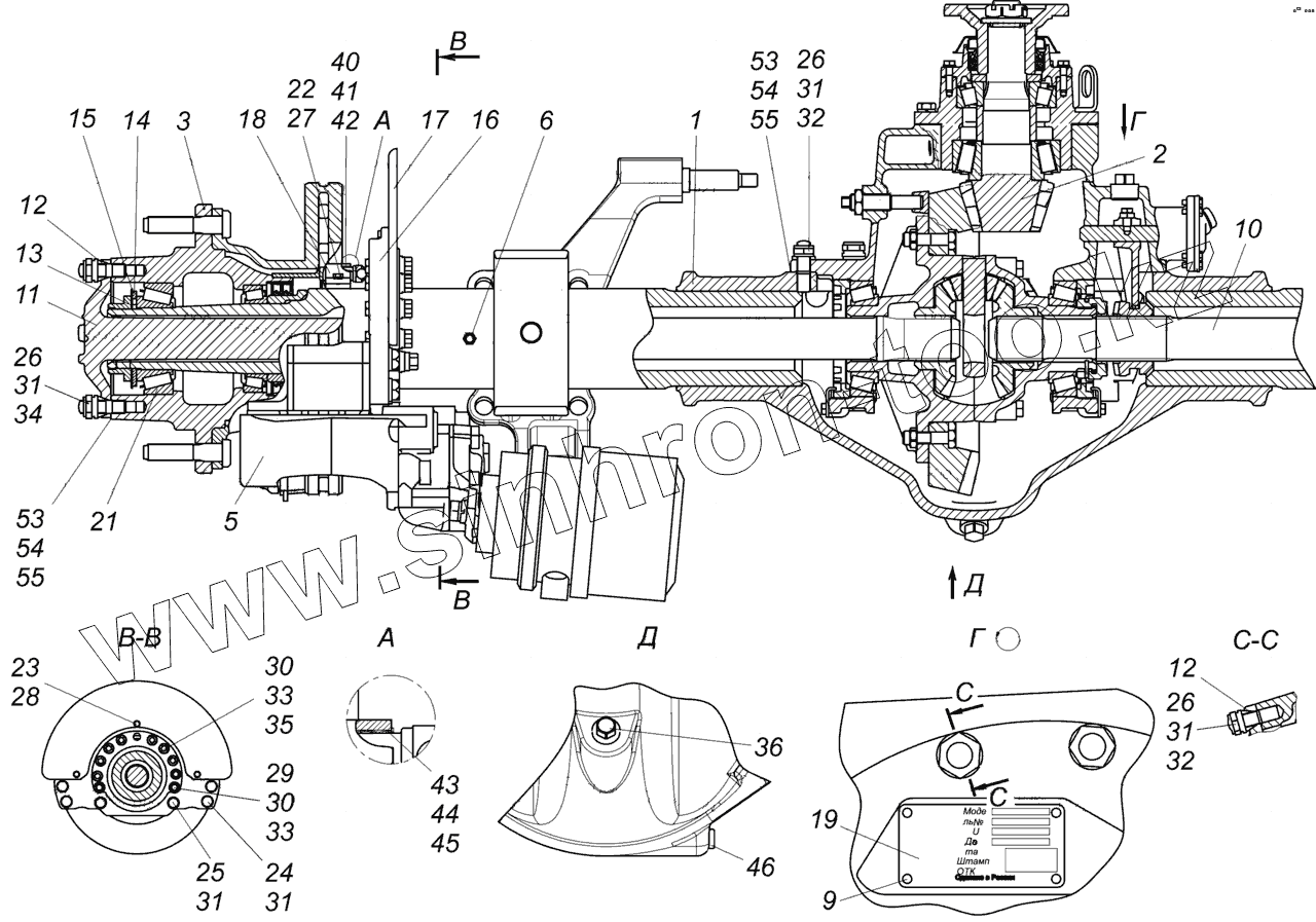 Каталог запасных частей к технике: Камский автозавод 4308-H3. 43081-2400015-20 Мост задний