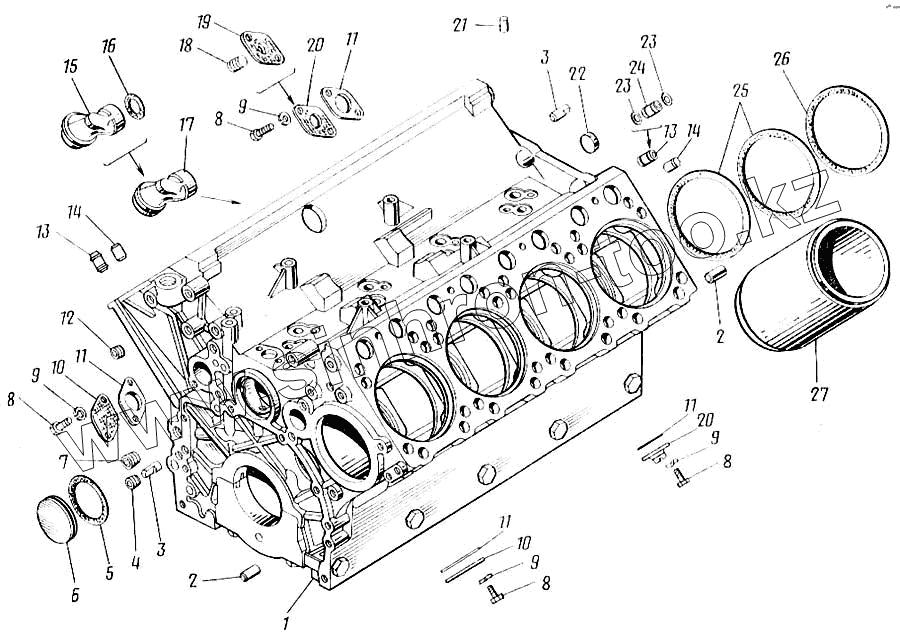 Каталог запасных частей к технике: Камский автозавод 43101. Блок цилиндров