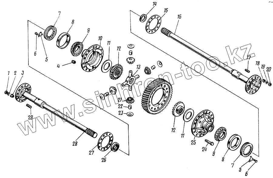 Каталог запасных частей к технике: Камский автозавод 43101. Дифференциал и полуоси моста заднего 4310-2400010