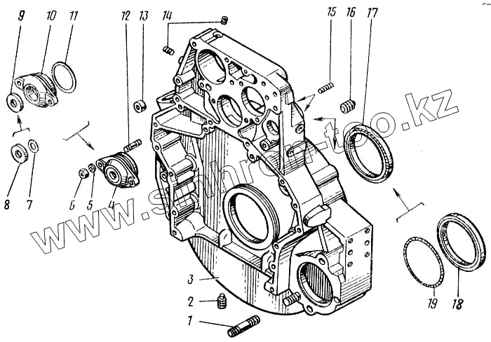 Каталог запасных частей к технике: Камский автозавод 43101. Картер маховика 740.1002310