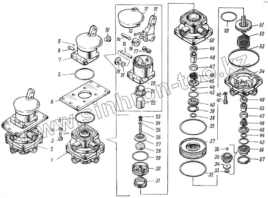 Каталог запасных частей к технике: Камский автозавод 43101. Кран тормозной двухсекционный 100-3514010