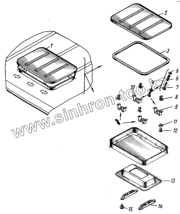 Каталог запасных частей к технике: Камский автозавод 43101. Люки крыши