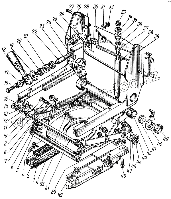 Каталог запасных частей к технике: Камский автозавод 43101. Механизм регулирования положения сиденья водителя 5320-6804110