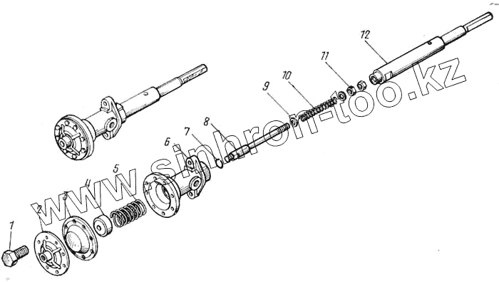 Каталог запасных частей к технике: Камский автозавод 43101. Механизм включения низшей передачи раздаточной коробки